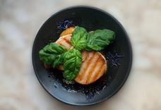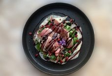 Салат с пармой, дыней и вишневым бальзамическим соусом